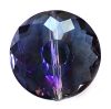 18mm chamfered and cut sparkly crystal disc shaped bead in a beauiful smoky blue grey with a purple AB finish. The threading hole runs across the diameter of the bead. Made in China.