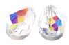 10x7.5mm cut crystal drop shaped bead with an iridescent surface coating. The threading hole runs through the length of the bead.