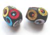 Oval ceramic bead with overlaid stone and multi coloured sequin decoration. These beads have a generous hole size (approx 3mm) and so are suitable for work with thicker or multiple threads.