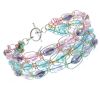 To make this bracelet you will need:- three colours of 0.5mm soft wire, 8x6mm crystal oval beads (or similar) in three colours, 6mm and 4mm jump rings, a fastener. Tools - you will also need wire cutters, a cork tile or similar to pin the end of the work to, a little masking tape and a few pins.