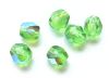 4mm pale green fire polished faceted pressed glass bead with an iridescent finish