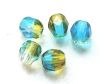 4mm capri blue with olive fire polished faceted pressed glass bead