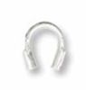 Alternative to gimp or calotte crimps. The wire protector is a curved horseshoe of metal with a slim tube on either end. The protector slips through the jumpring that is used to attach the fastener, and the thread or beading wire run round the horseshoe to protect it from the chafing that can sometimes occur. Unlike gimp or calotte crimps though it does not completely cover the thread used, as the thread remains exposed on one side at the curve of the horseshoe.