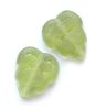12x7mm pressed frost olive glass leaf. The threading hole runs from front to back at the top of the leaf.
