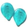Large leaf shape bead in shades of teal with a threading hole that runs from front to back through the top of the bead. Czech manufactured.
