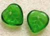 9x8mm clear emerald pressed glass leaf. The threading hole runs from front to back at the top of the leaf.
