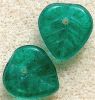 9x8mm clear teal pressed glass leaf. The threading hole runs from front to back at the top of the leaf.