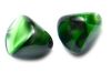 10mm 3D soft edged triangle in bright emerald green with black marbling stripes running through it. Pressed glass shape made in the Czech Republic