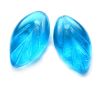 12x6mm top hole pressed clear Capri blue glass leaf shaped bead. Made in the Czech Republic.