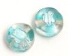 10x4mm glass disc with silver foiling and teal splash decoration.