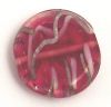 20mm clear cerise pink glass disc with internal silver squiggles.