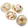 Cushion shaped bead with a purple core decorated with lilac flowers. Available both singly or by the string. Strings consists of approximately 40 beads