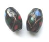 Oval black glass bead with multi coloured spots and goldstone swirl decoration. The threading hole runs along ther length of the bead. Available both singly or by the string. Strings consist of approximately 27 beads.