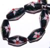 Oval black glass bead with internal pink star lily. The threading hole runs along ther length of the bead. Available both singly or by the string. Strings consist of approximately 10 beads.