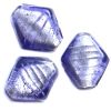 Tanzanite colour diamond shaped bead with a silver lining. These 15x12mm Indian beads have a threading hole running the length of the bead that will take a 1mm thread.