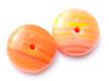 10mm diameter disc shaped bead with a central hole. Marbling on the beads is coloured from soft peach through stronger orange shades with flasshes of yellow highlights. Pressed glass made in the Czech Republic.