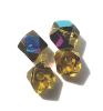 4mm topaz cut edged cornerless cube glass beads with an AB finish.