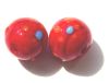 12mm round glass bead in bright red with a surface decoration of dotted orange and turquoise flower patterns. Available either single or by the string. Approx 33 beads per string.