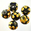 12mm black round beads with a pale cream and amber swirl and spot pattern. Available either singly or by the string, approx 31 beads per string.