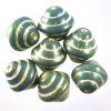 Soft jade 10mm bicone shaped bead with silver highlights. Indian glass bead with a hole running through the middle.