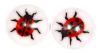 12mm white glass disc bead decorated with a ladybird decoration - see GL2961 for the larger 14mm version of the same design. The threading hole for this bead runs throungh the height of the bead. Available either singly or by the string. String length approx 16 inch/40cm, average 34 beads to the string