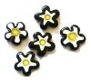 12mm black, white and yellow glass flower shaped bead. Available either singly or by the string. String length approx 16 inch/40cm, average 35 beads to the string