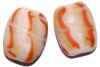 20x15mm opaque latte with orange stripe cushioned rectangle with a frosted finish. This Indian bead has a 1mm threading hole running the length of the bead.
