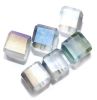 6mm pale frost grey cut edge cube with a light AB matt finish. These Chinese manufactured beads have a threading hole running the length of the bead.