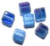 6mm mid blue cut edge cube with an AB finish. These Chinese manufactured beads have a threading hole running the length of the bead.