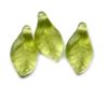 10x6mm leaf shaped bead with a threading hole that runs across the top of the leaf. Pressed glass bead, made in the Czech Republic.