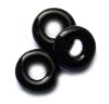 10mm diameter glass donut shaped bead. These gorgeous little donuts make great spacers between chunky beads as well as being used in the more traditional ways. The holes are a generous 3mm+ in diameter so they can also be used on macrame and thicker threads. Pressed glass made in the Czech Republic