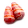 Drop shaped bead with a coiling pattern of pink and orange with red dots. The threading hole is approx 0.8mm in diameter and runs through the height of the bead. Made in India.