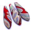 Special effect pressed glass dagger shaped bead in marbled frost white, grey and red with flecks of rainbow. Pressed glass bead made in the Czech Republic.