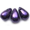 Drop shaped bead with a strong metallic finish. Czech manufactured pressed glass, the threading hole runs across the top of this bead.