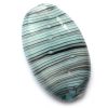 28mm long flat oval bead, 18mm wide, opaque glass bead decorated with swirling rounds of shades of the same colour.