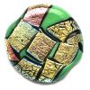 30mm flat round opaque glass disc bead decorated with metal leaf pieces, some gold, some with a dichroic finish.