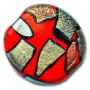 30mm flat round opaque glass disc bead decorated with metal leaf pieces, some gold, some with a dichroic finish.