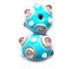 14mm squashed round turquoise bead with external lilac and white decoration.