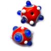 14mm squashed round scarlet bead with external blue and white decoration.