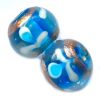 12mm clear glass bead with a coloured core and surface fleur and goldstone decoration.