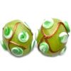 16x14mm fat oval glass bead with a raised goldstone decoration and swirly dot feature.