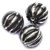 12mm round glass bead with a ribbed effect surface.