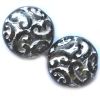 14mm diameter textured pressed glass cushioned disc in black with silver highlights