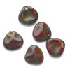 With a hole in one corner this triangular flatish bead is lightly curved shaped and is reminiscent of a petal.  Pressed glass bead made in the Czech Republic.