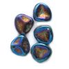 With a hole in one corner this triangular flatish bead is lightly curved shaped and is reminiscent of a petal.  Pressed glass bead made in the Czech Republic.