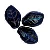 14x9mm curved glass leaf. Threading hole runs from side to side across the top of the leaf shape. Pressed glass bead made in the Czech Republic.