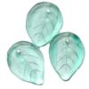Large leaf shape bead in pale teal with a threading hole that runs from front to back through the top of the bead. Czech manufactured.