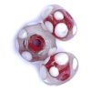 14mm diameter rondelle shaped glass beads with a red core and white dots on the outside.  These beads have a generous threading hole approx 2mm in diameter.