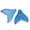 Beautiful fishtail shaped glass pendant.  The pendant is approximately 20mm wide by 19mm long and 2mm deep, with a threading hole that will take up to a 0.8mm wire or thread.