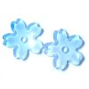 15mm diameter baby blue glass flower bead with a central theading hole just over 1mm in diameter.